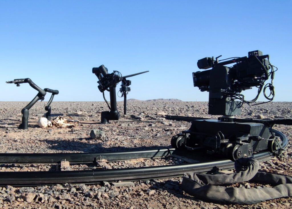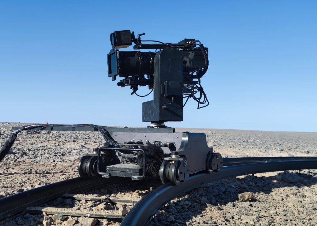Nous avons installé une Dolly IP, une technologie de pointe en matière de robotique et de cinématographie, permettant des prises de vue précises et innovantes. Malgré des conditions climatiques extrêmes, avec des températures atteignant les 50°C, notre matériel a parfaitement résisté, assurant le bon déroulement du tournage.